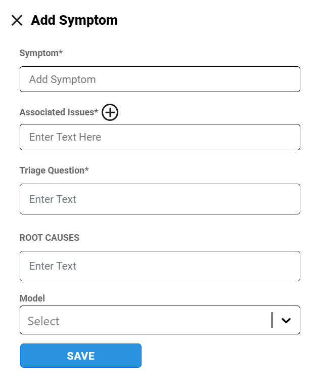 - In the Add Symptom form, in the Symptom field, enter the symptom.