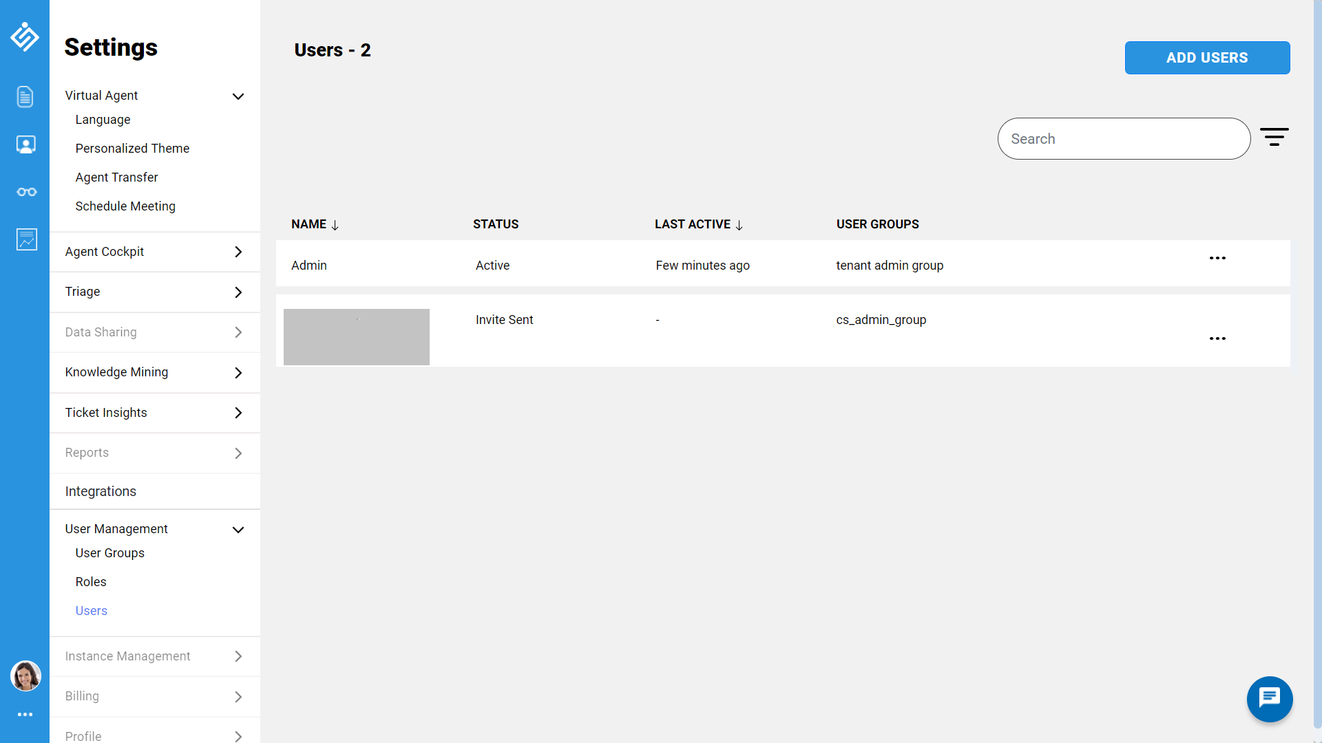 User management involves managing users and user details. From the Users page, admin can manage user profile and send invites to users to access Intelliservice. By default, tenant account comes with an admin account. Using admin account, create user profile, send user invitations, create user groups and roles.