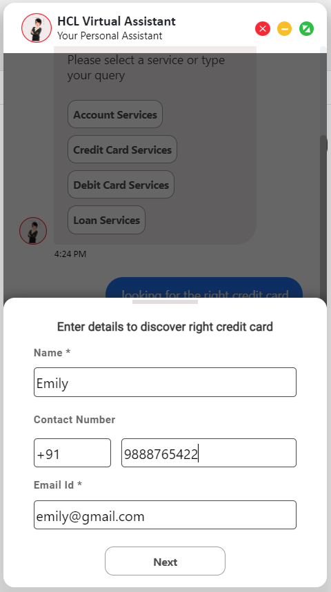 - If the incoming user is a new user, the virtual assistant will request for a few more