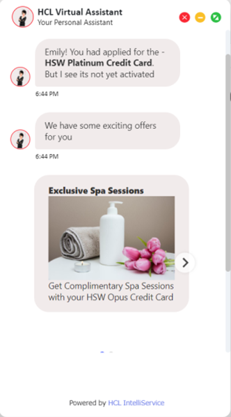 credit cards, the virtual assistant will show the next best offers to nudge the user