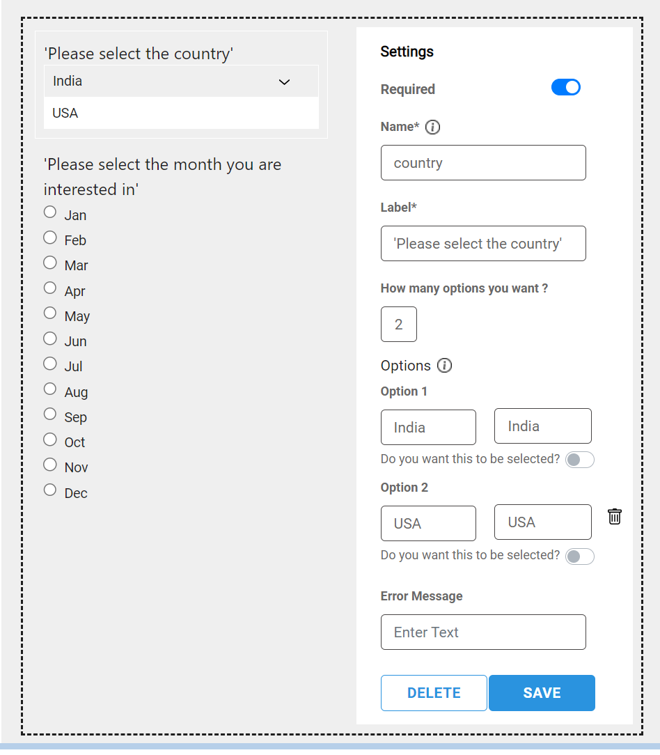 - Label: 'Please select the country' (please include the single quotes)