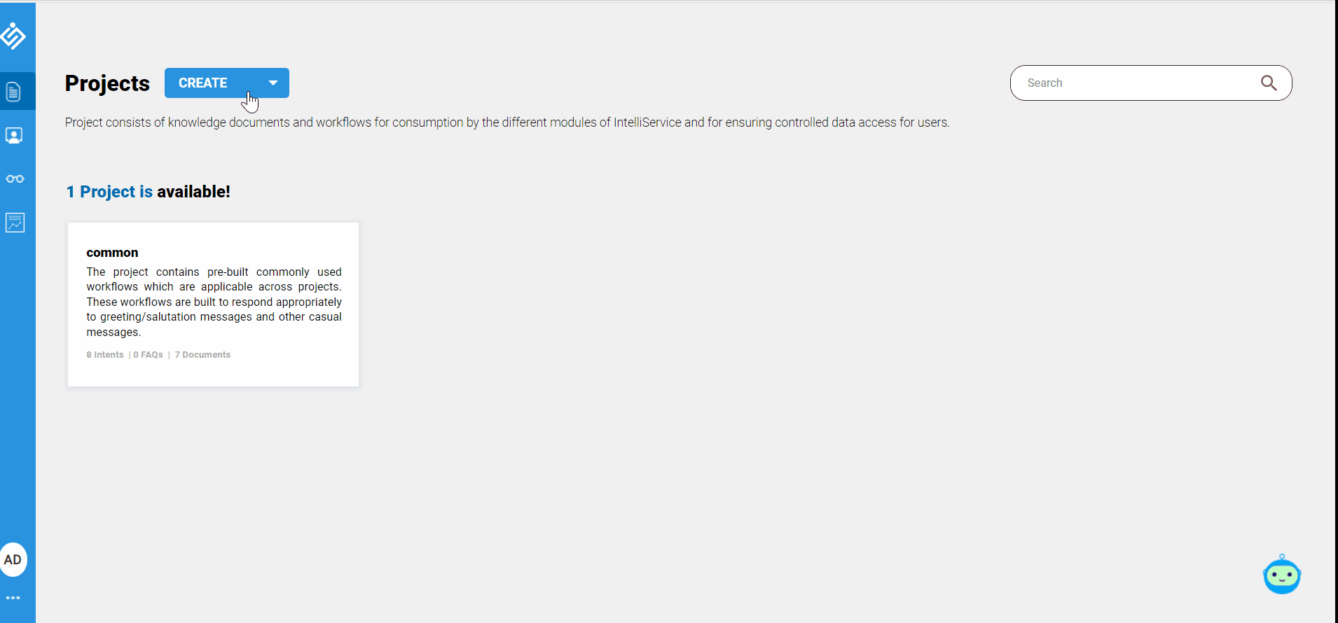 - After logging into the application, in the homepage, click the CREATE drop-down next to the Projects label.