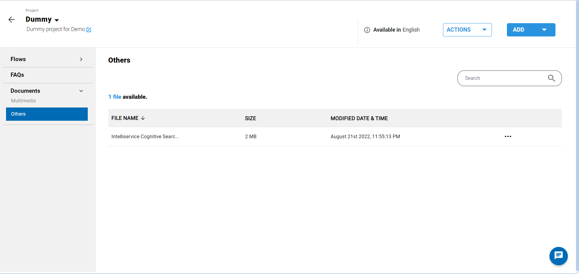 - At the top right corner of the project page, click the ADD drop-down, and select the Documents option.