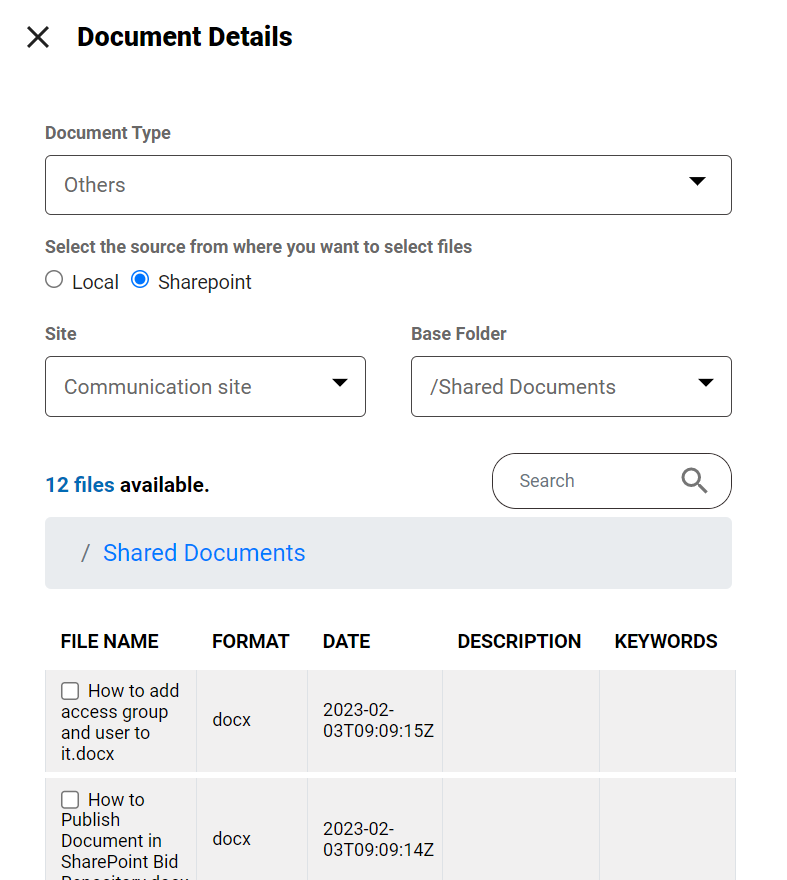 - Check the default settings of the document type and source are set to Others and SharePoint, respectively.