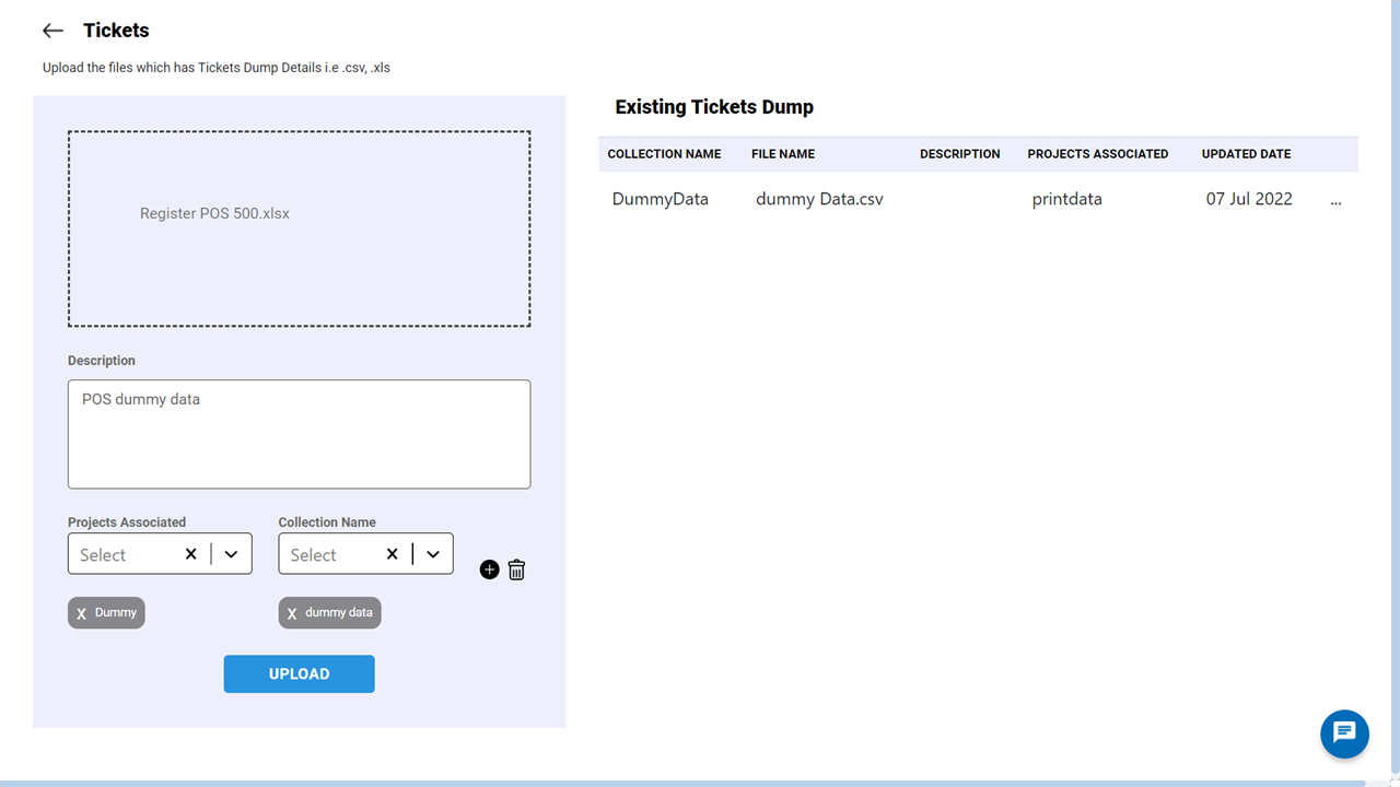 To begin with, follow the steps below to upload the ticket data dump into the system: