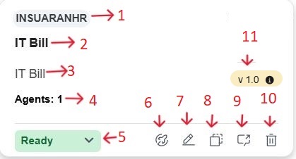 - Version: Displays the current agent package version (example, v1.0), and hovering over it reveals additional deployment details such as the Endpoint ID and Deployment Date.