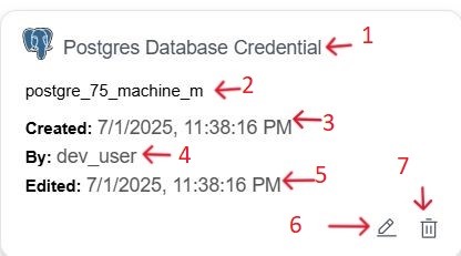 Credential Type: Displays the type of service or account (for example, Postgres Database Credential, OpenAI account).
