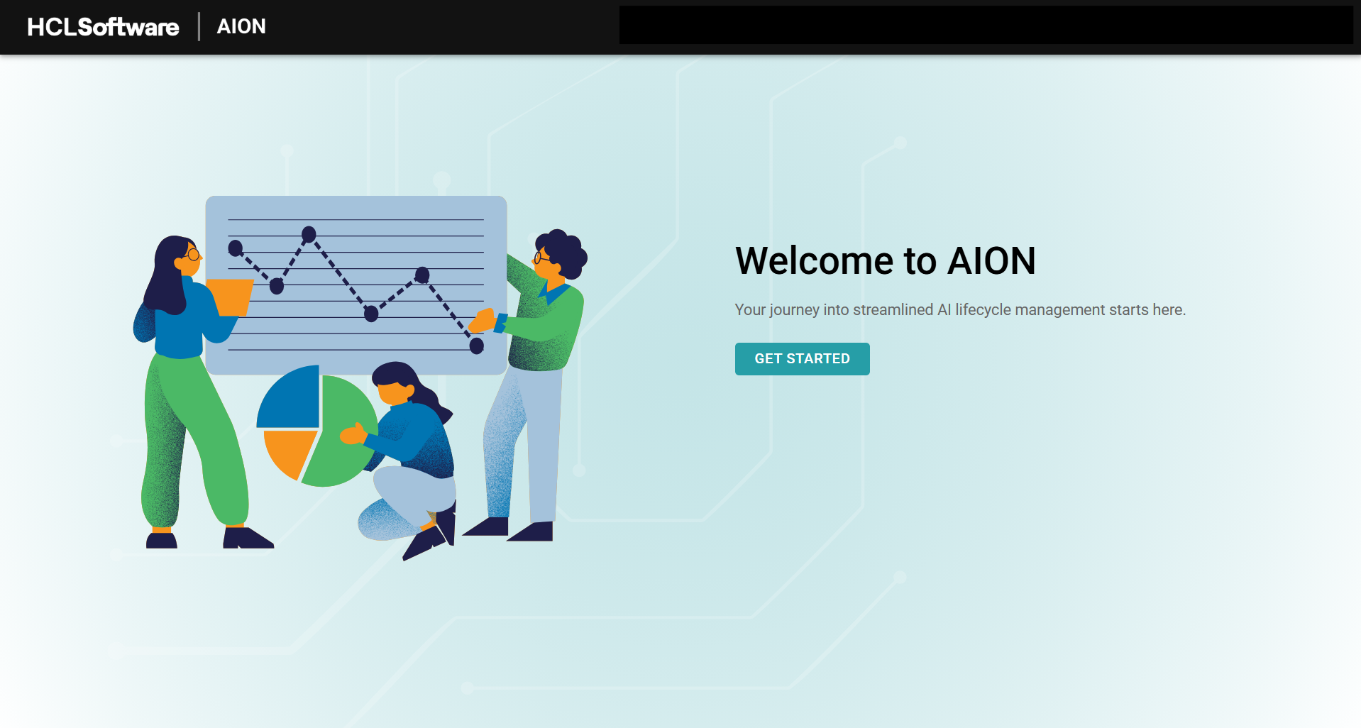 AION UI The AION UI is a graphical user interface that allows you to interact with your machine learning resources. URL: http://<host>:3000/homescreen Click on ‘Get Started’ to login or create a new account.