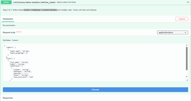 A Payload is provided to define one or more labels and rules where we can add name, weightage and constant abstain and define the label.