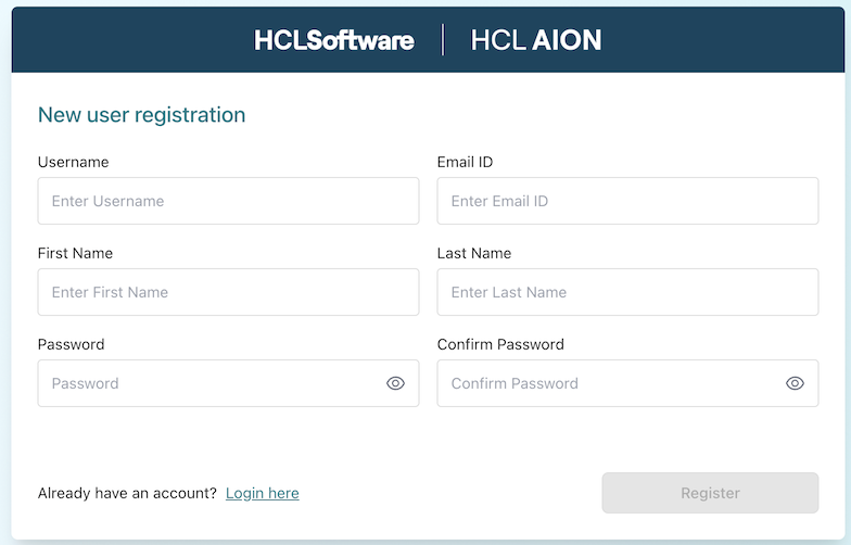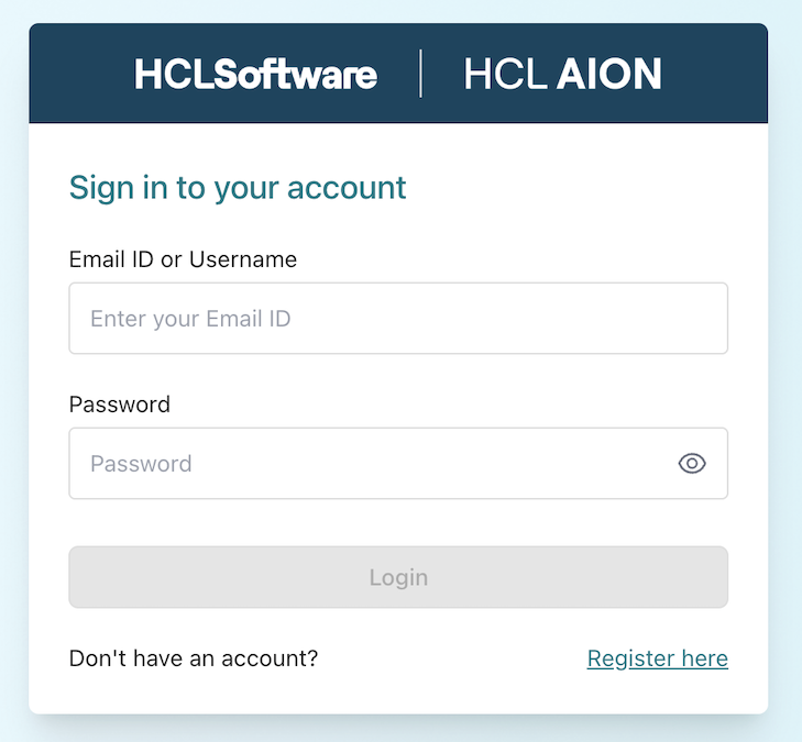 HCL AION UI The HCL AION UI is a graphical user interface that allows you to interact with your machine learning resources. URL: https://<host>:/homescreen Click on ‘Get Started’ to login or create a new account.