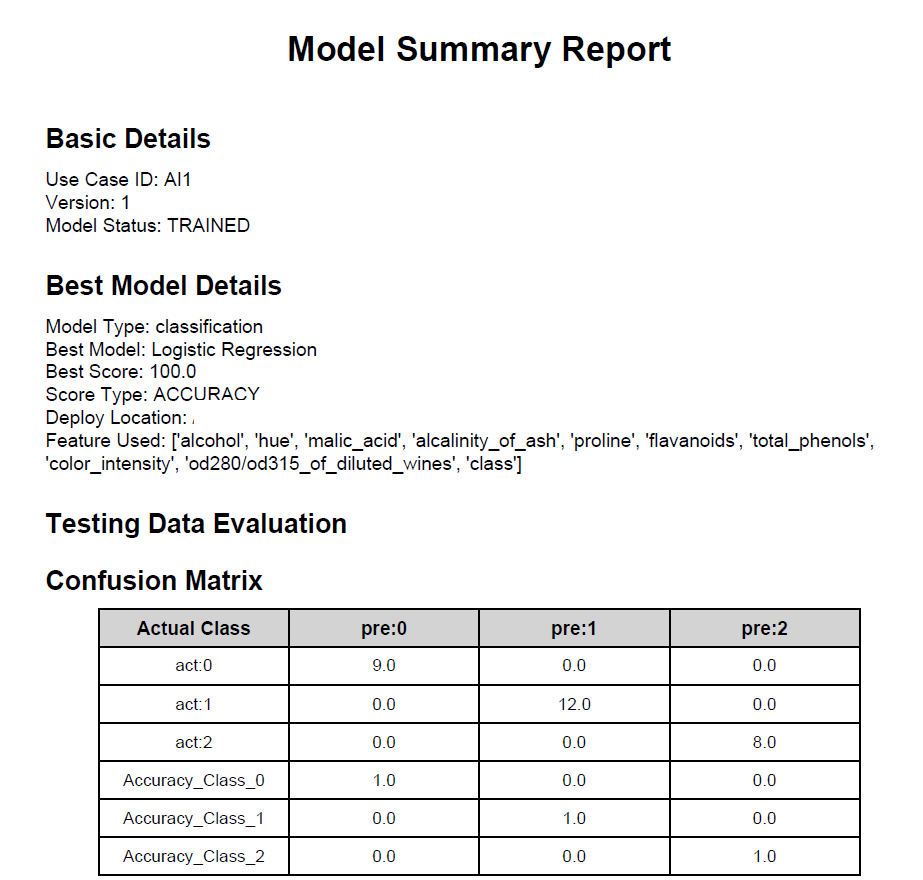 Downloads the full training report generated after pipeline execution. The report includes data preprocessing summary, model performance, and comparative metrics.