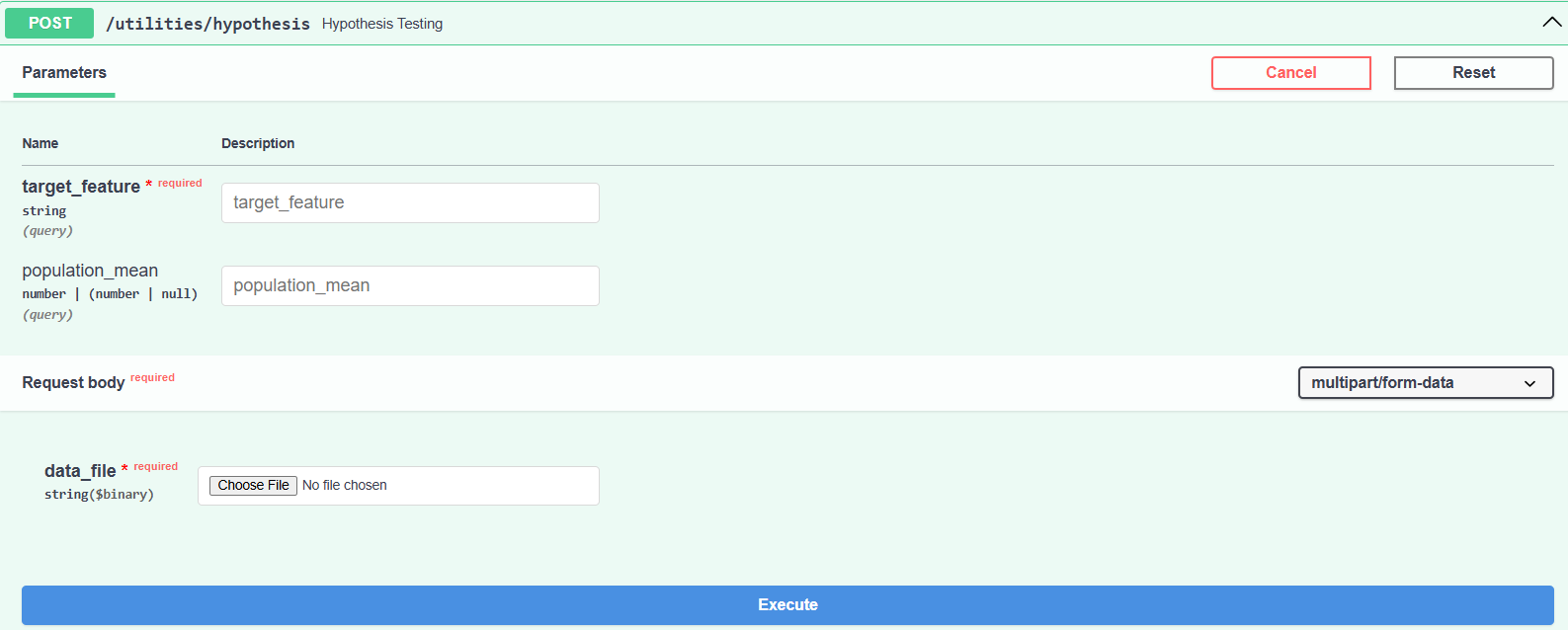 - Upload Data File (.csv models are supported only).