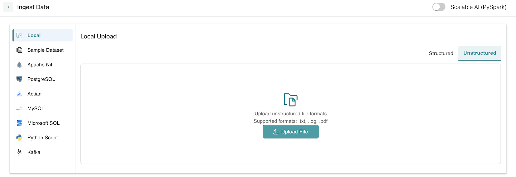 - Click on Local -> Unstructured Data.