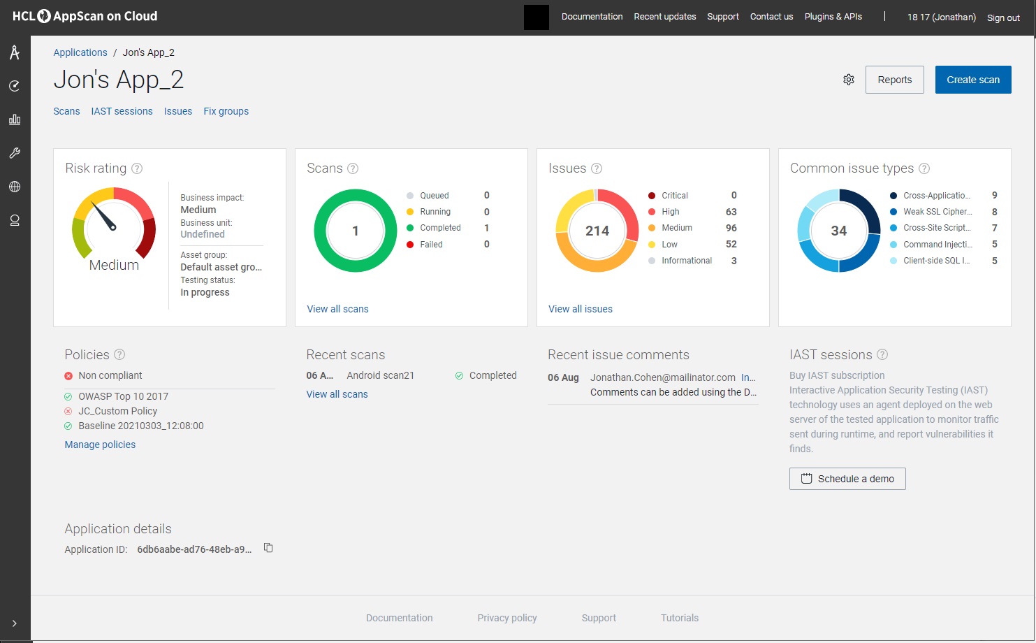 In the Application details area at the bottom of the page, click this icon to copy the scan ID to send to other users. |