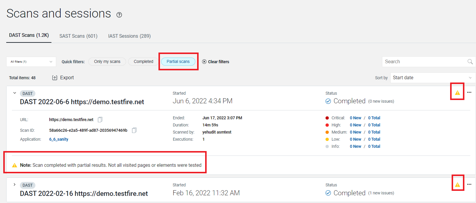 Note: Partial scans apply to DAST scans only.