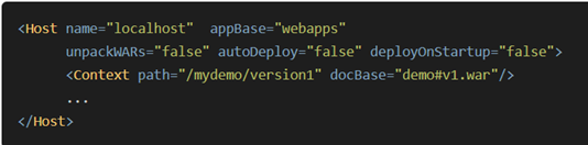 XMLfile underCATALINA_BASE/conf/[engine name]/[host name], the application name is the filename without theXMLextension. The name for demo.xml is demo. - If using context elements statically in a server.xml file,