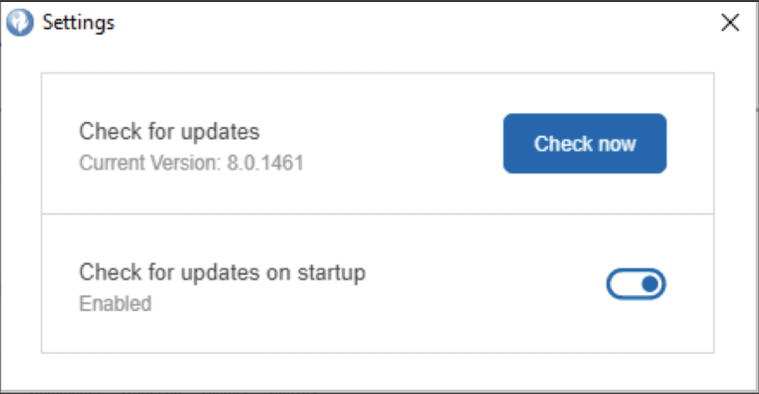 Par défaut, AppScan Go! recherche les mises à jour disponibles à chaque démarrage.