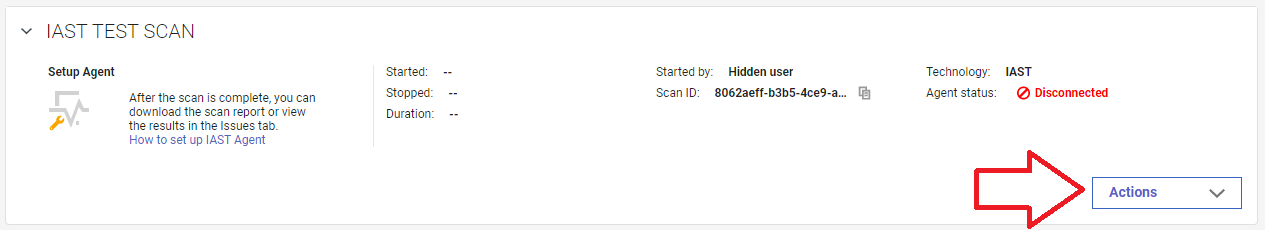 L'agent IAST surveille à présent le trafic sur votre serveur. Vous pouvez en voir la confirmation dans l'entrée Examen de l'onglet Application. Lorsque vous exécutez les tests du système ou un examen DAST, les problèmes sont identifiés et ajoutés à l'entrée de l'examen.Important : L'agent IAST détecte les problèmes en surveillant le trafic vers l'application. Il ne génère pas lui-même de requêtes. Une fois l'agent IAST installé, les problèmes sont généralement détectés lors des tests fonctionnels, de l'assurance qualité et des examens DAST.Remarque : Un examen IAST ne s'arrête pas automatiquement. Il surveille constamment le trafic. Vous pouvez désactiver la surveillance en arrêtant la session IAST dans l'interface utilisateur AppScan 360°. Toutefois, bien que cela désactive la plupart des activités de l'agent IAST, l'agent continue de communiquer avec AppScan 360° pour détecter le moment où la session est redémarrée.