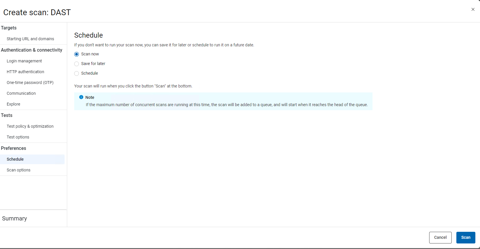 Spécifiez quand l'analyse doit s'exécuter : maintenant, plus tard ou selon un calendrier.