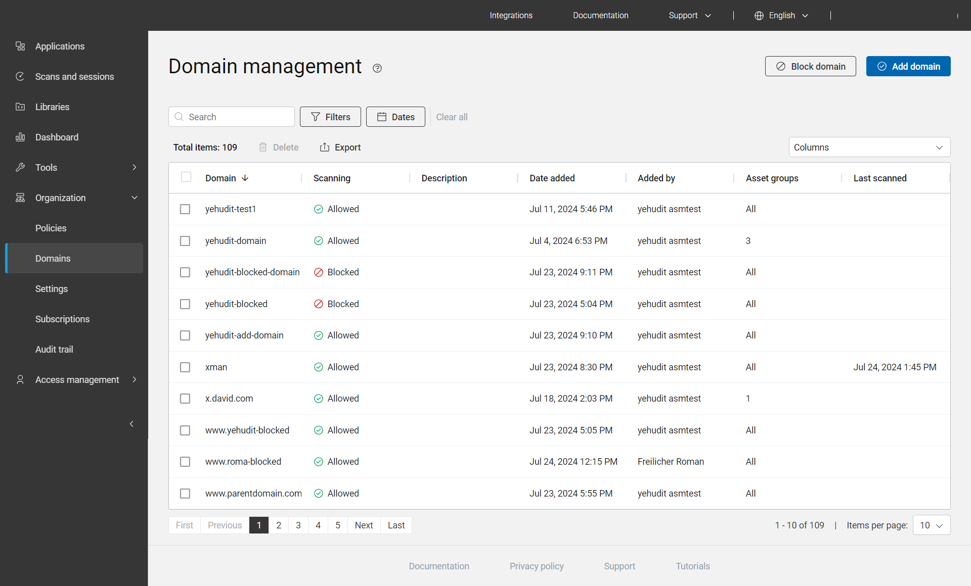 - Cliquez sur Ajouter un domaine. Le domaine est ajouté à la liste autorisée et vous pouvez exécuter une analyse DAST.Remarque :