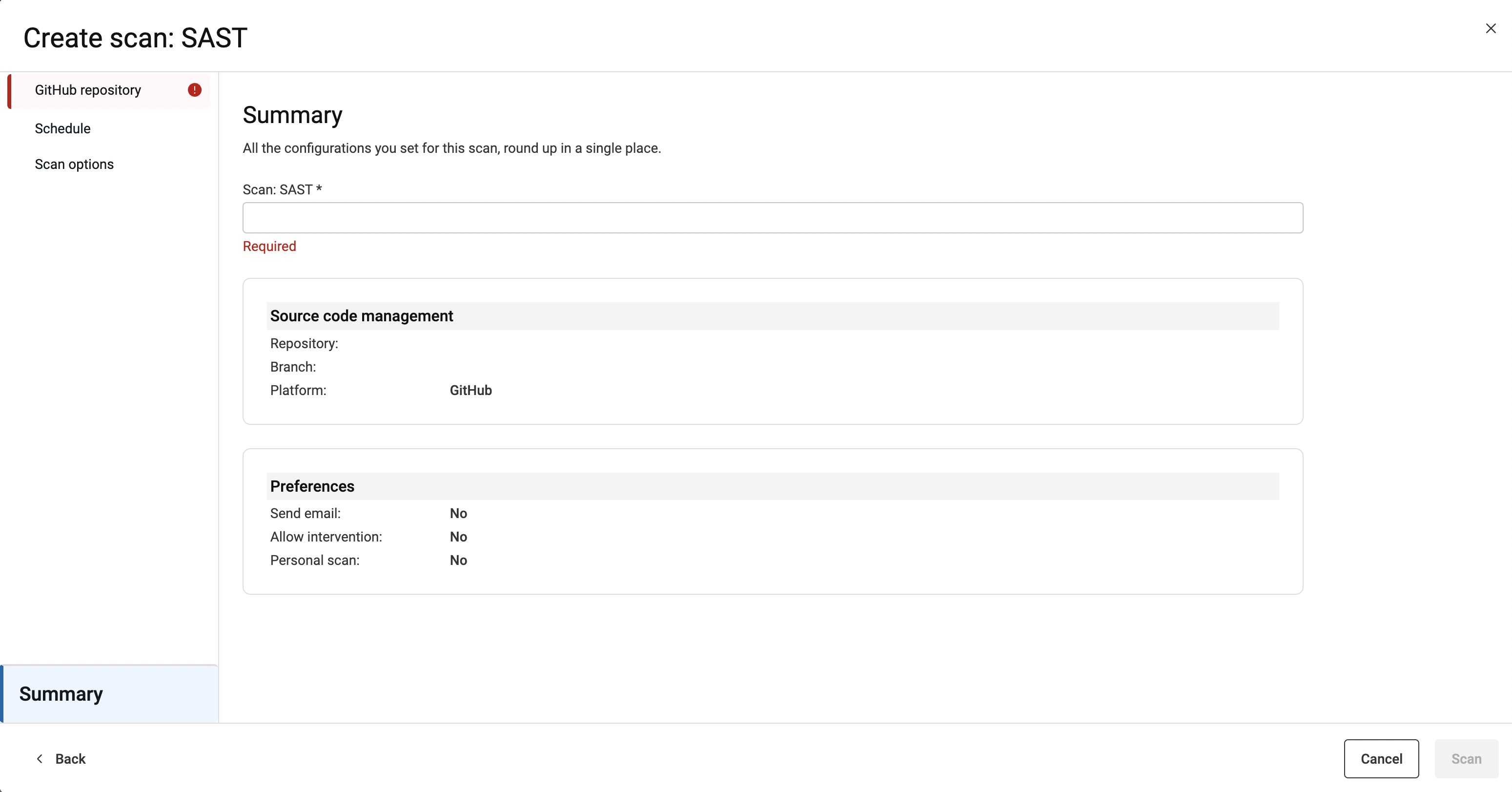 Vous pouvez effectuer une analyse statique directement sur un référentiel GitHub Enterprise en utilisant un AppScan Presence.