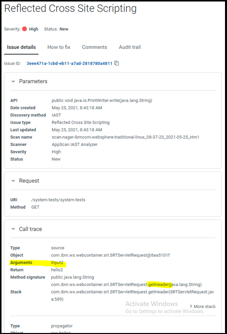com.hcl.appscan.systemtests.SystemTests からのすべての問題をフィルターにより除外するには、以下を追加します。"ignoredMethods": ["com.hcl.appscan.systemtests.SystemTests"]| フィールド | 値 | 説明 |