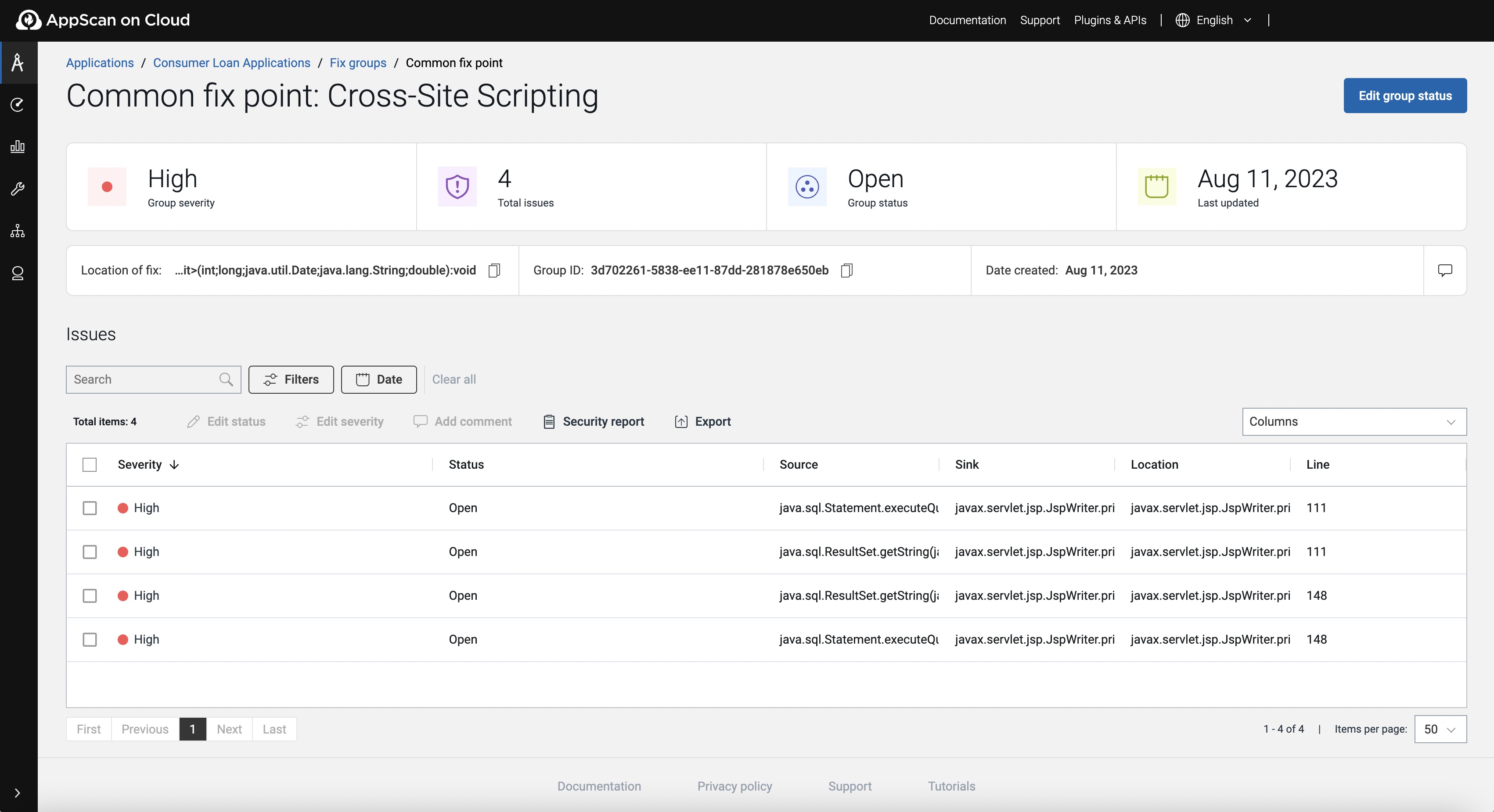 グループの重大度 問題と同様、修正グループは次の 4 つの重大度のいずれかに分類されます。「重大」「高」「中」、または「低」。修正グループの重大度は、最も重大度の高いコンポーネントの問題によって決まります。