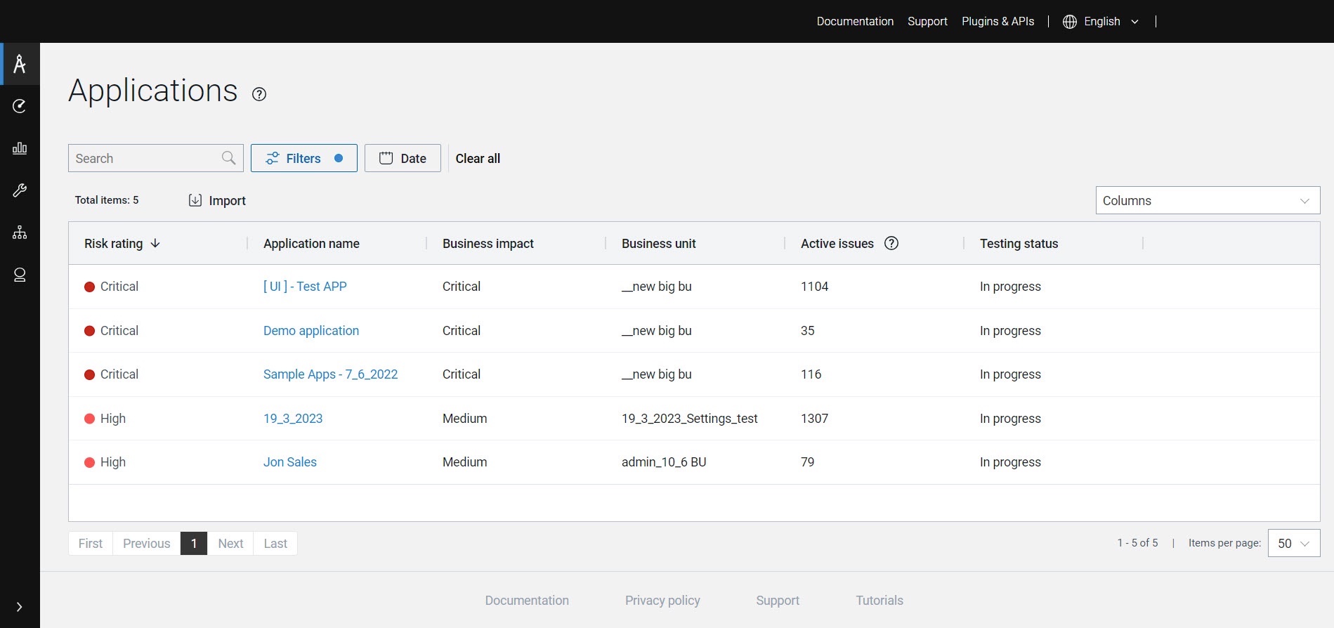 应用程序页面列出组织中您分配到的资产组内的所有应用程序。在应用程序页面中,您可以创建新的应用程序,并打开单个应用程序页面。
