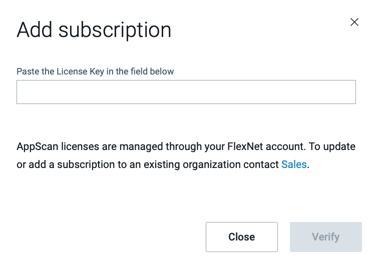 - 在新增訂閱對話框中,將授權金鑰貼到欄位中。