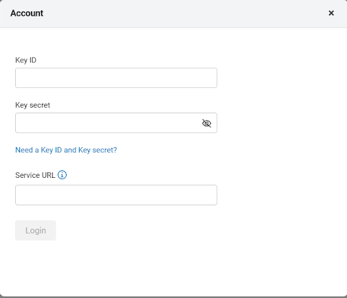 如果您目前未登入 AppScan 360°,請先提供金鑰 ID 和金鑰密碼,然後輸入服務 URL。