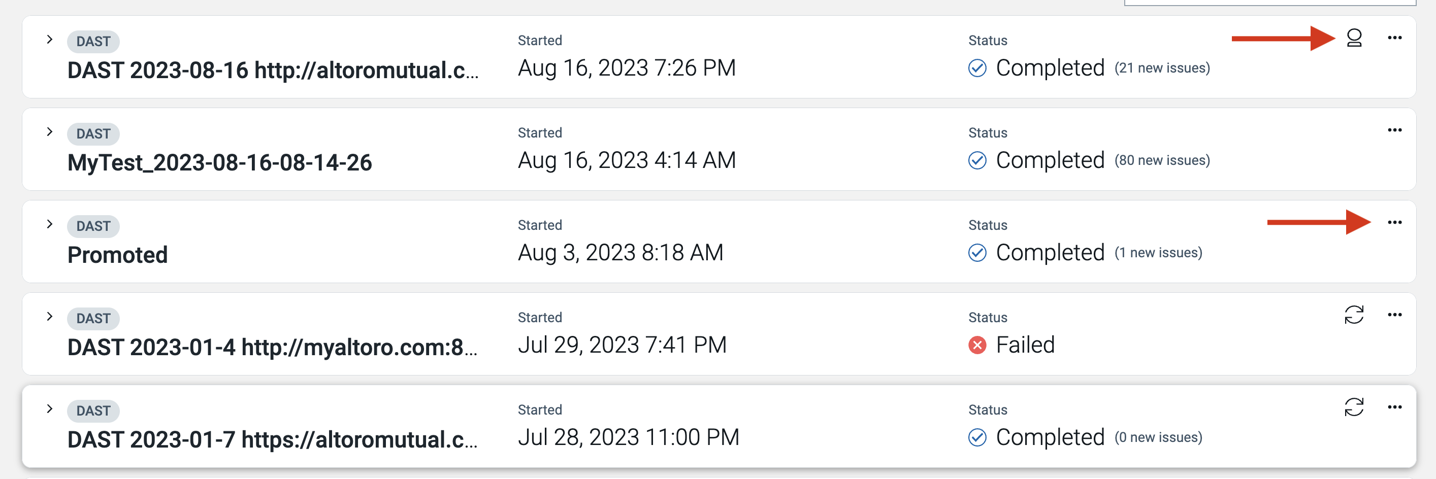 個人掃描會顯示在應用程式的掃描清單中,但是個人掃描中發現的問題不會與其他應用程式結果合併。正如同一般掃描一樣,您可以下載個人掃描的報告。