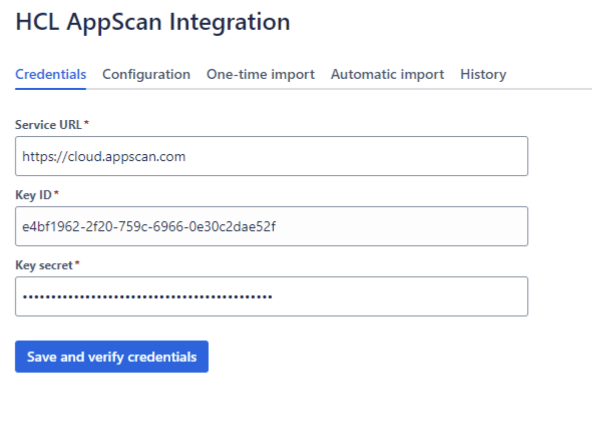 輸入並驗證 HCL AppScan on Cloud 認證。