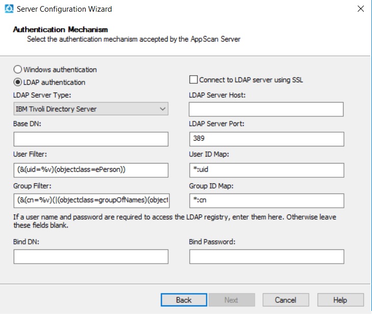 - For the Authentication Mechanism, select LDAP
