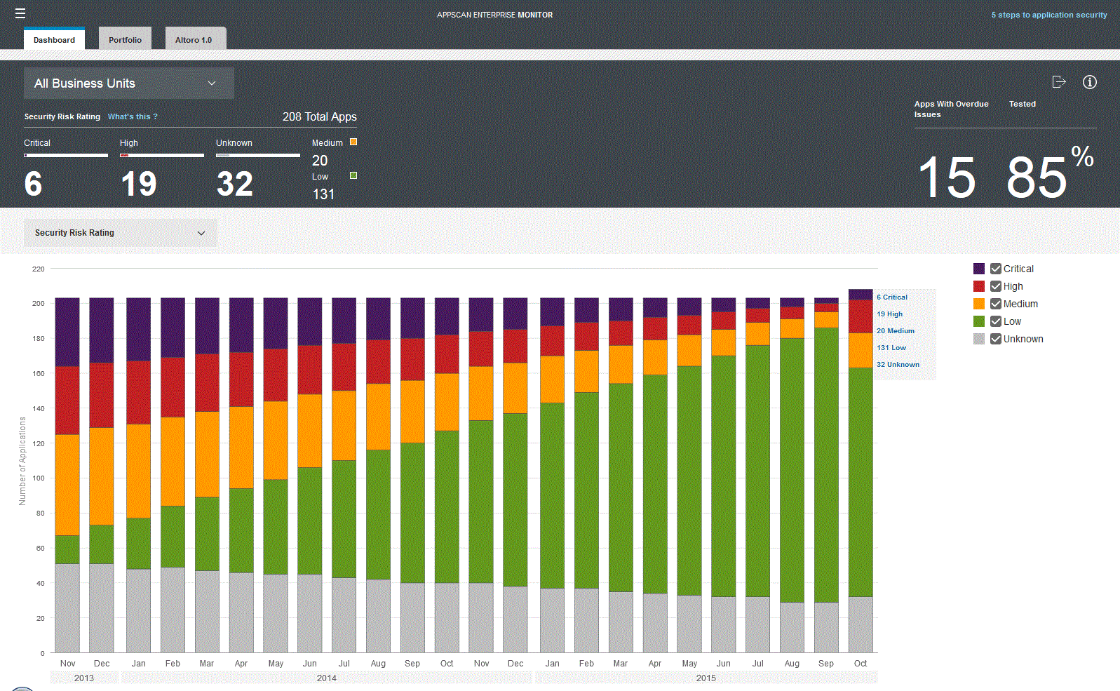 Use the dashboard to track various metrics and trends of the applications that compose your portfolio.