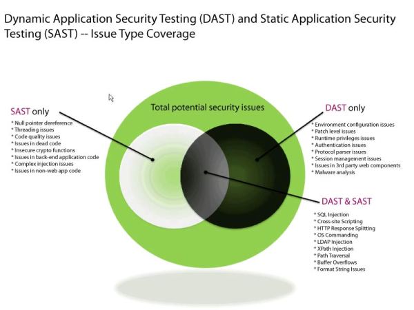 没有任何一种自动化分析技术可发现所有可能的漏洞;每种技术都有其自己的优点和弱点。动态分析安全测试 (DAST) 通过与黑客所使用的类似方法探测应用程序来测试正在运行的 Web 应用程序。静态分析安全测试 (SAST) 检查应用程序的源代码以发现可能的漏洞。