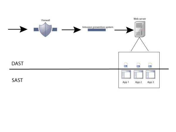 DAST 查找从网络基础结构到 Web 服务器级别的所有内容。SAST 仅直接查看 Web 应用程序。
