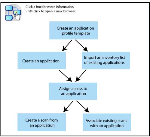 这些工作流程示例说明了您如何开始管理应用程序:具体取决于您是首次使用 AppScan® Enterprise 还是想要将现有扫描与新应用程序相关联。请选择最适合您的需求的示例,或使用这些示例的某些部分来作为创建您自己的工作流程的起点。
