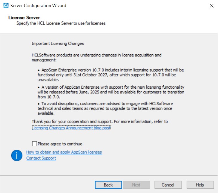 - 如果您已在自己的网络上部署 HCL® License Server,请跳至 安装 HCLAppScan Enterprise Server 任务。