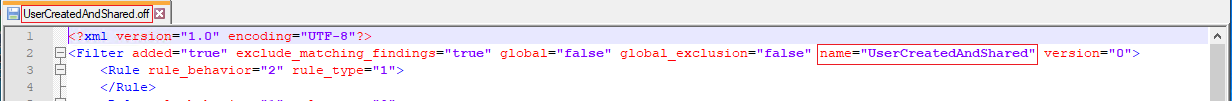 <data_dir>/HCL/AppScanSource/scanner_filters. - Renommez le fichier avec le nom du filtre d'origine. Par exemple,