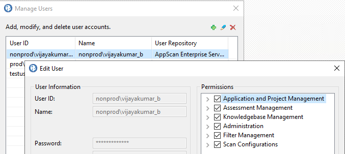 La gestion des utilisateurs est prise en charge dans AppScan Enterprise. Mettez à niveau manuellement les informations d'autorisation utilisateur d'AppScan Source.