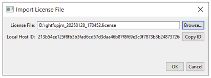 - 在“导入许可证文件”对话框中,单击浏览以在本地系统中查找许可证文件。选择许可证文件,然后单击确定。