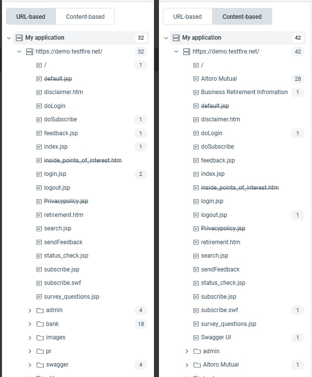 - If you have defined content-based rules, you can toggle between URL-Based view and Content-Based view by clicking the combo-box at the top of the pane. (See Content-based view.)