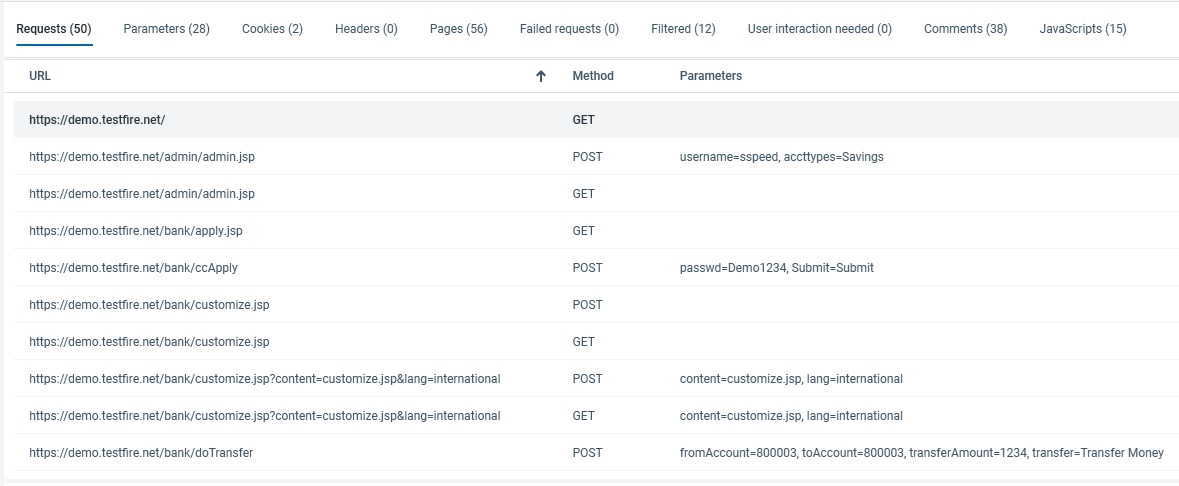 Toutes les pages explorées par AppScan. |