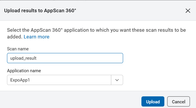 Cliquez sur Charger les résultats de l'examen vers AppScan 360°.
