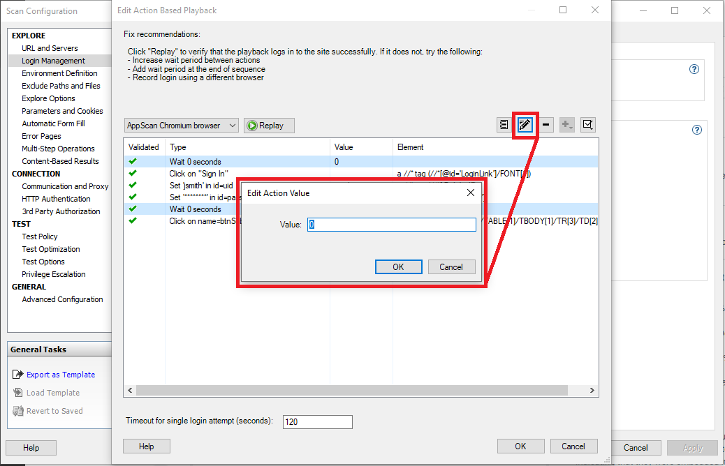 - 如果缺少其他操作、浏览器已到期或密码已到期,请检查浏览器回放。