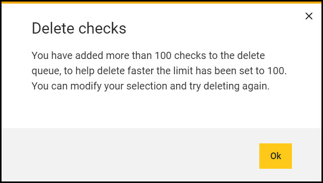 Important: You can select up to 100 checks at a time to delete. This limitation is to improve the performance of the operation.