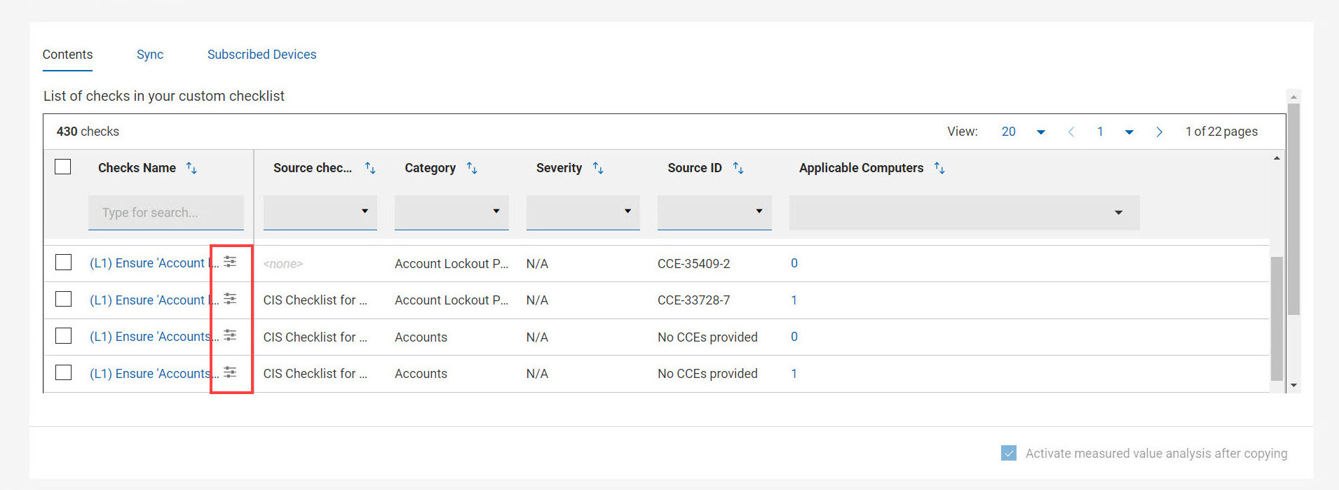 Custom checklist contains multiple checks. You can only modify the copies of checks located in custom checklist. For example, in a Account lockout threshold check, you can set the maximum number of failed login attempts before the account is locked to any desired value.