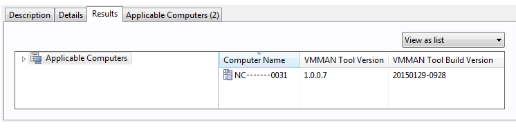 Activez l'analyse Informations sur VM Manager pour extraire des données sur la version installée de VM Manager Tool. Vous pouvez utiliser l'analyse pour confirmer rapidement l'installation réussie de l'utilitaire.