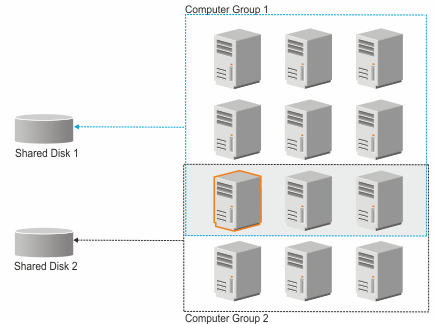- Le groupe d'ordinateurs 2 qui contient les ordinateurs sur lesquels le disque partagé 2 est monté