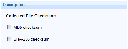 - Sélectionnez les types de total de contrôle à collecter, à savoir MD5, SHA-256, ou les deux.